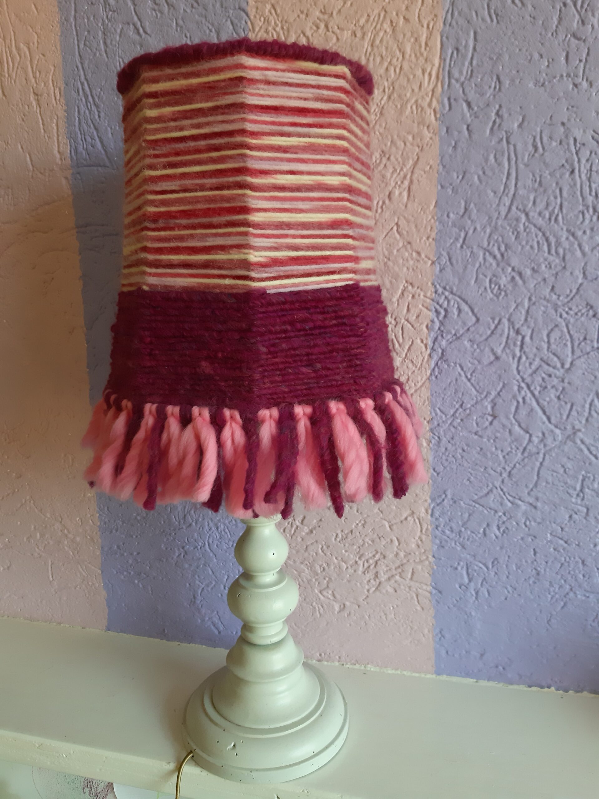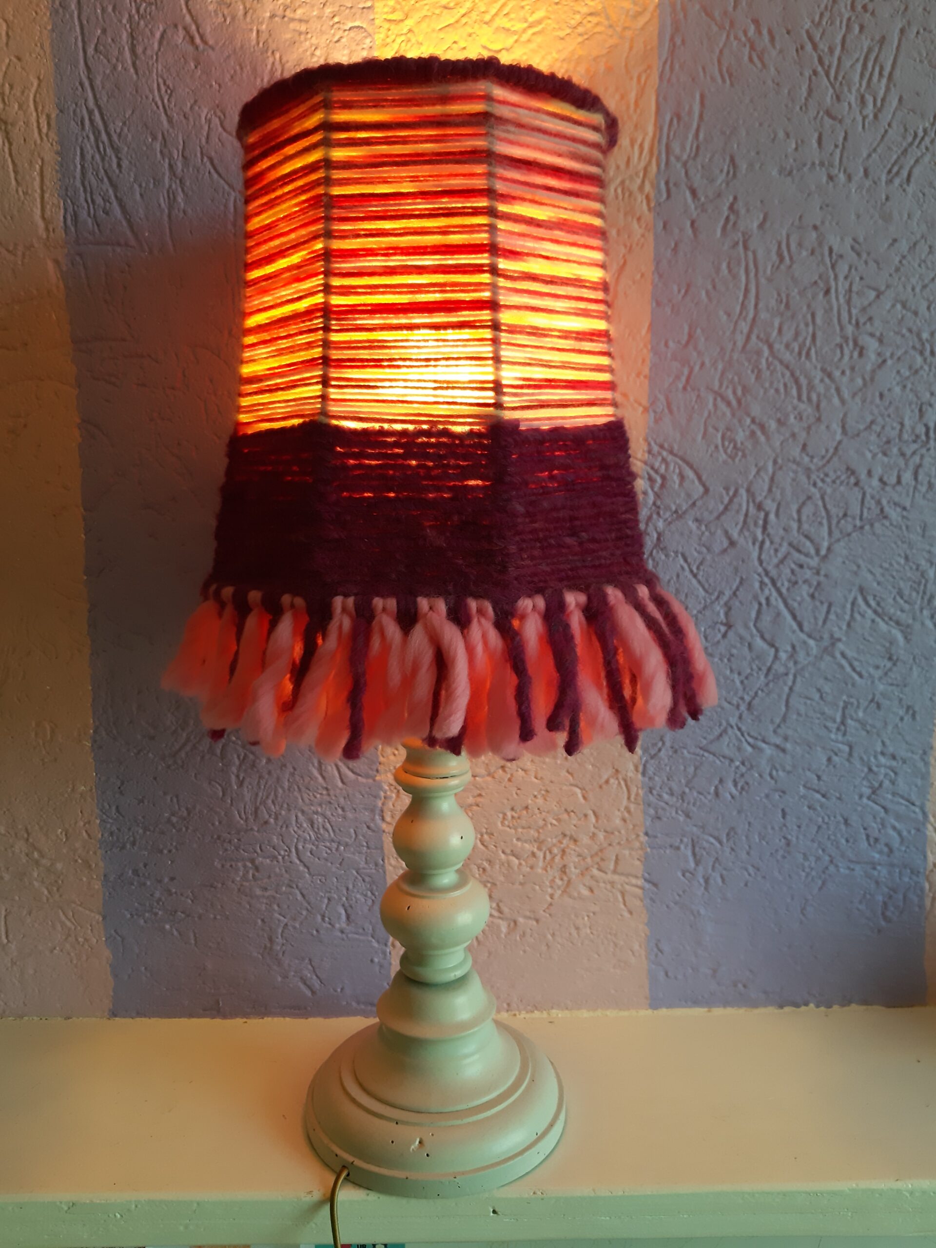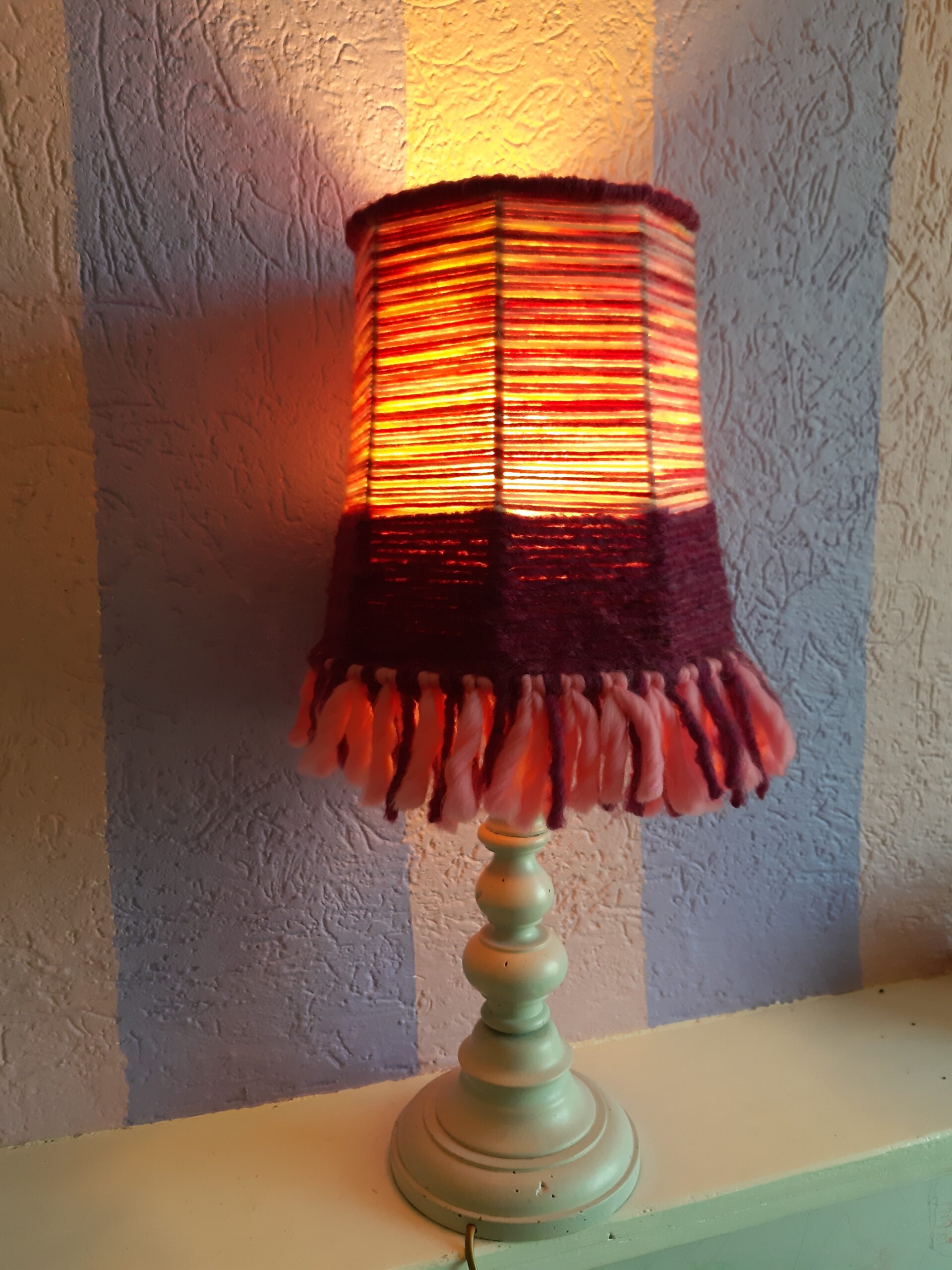 Deze lamp met retro uitstraling brengt gegarandeerd een warme sfeer in je interieur. Met de hand gemaakte lampenkap op een gerecyclede lampvoet.